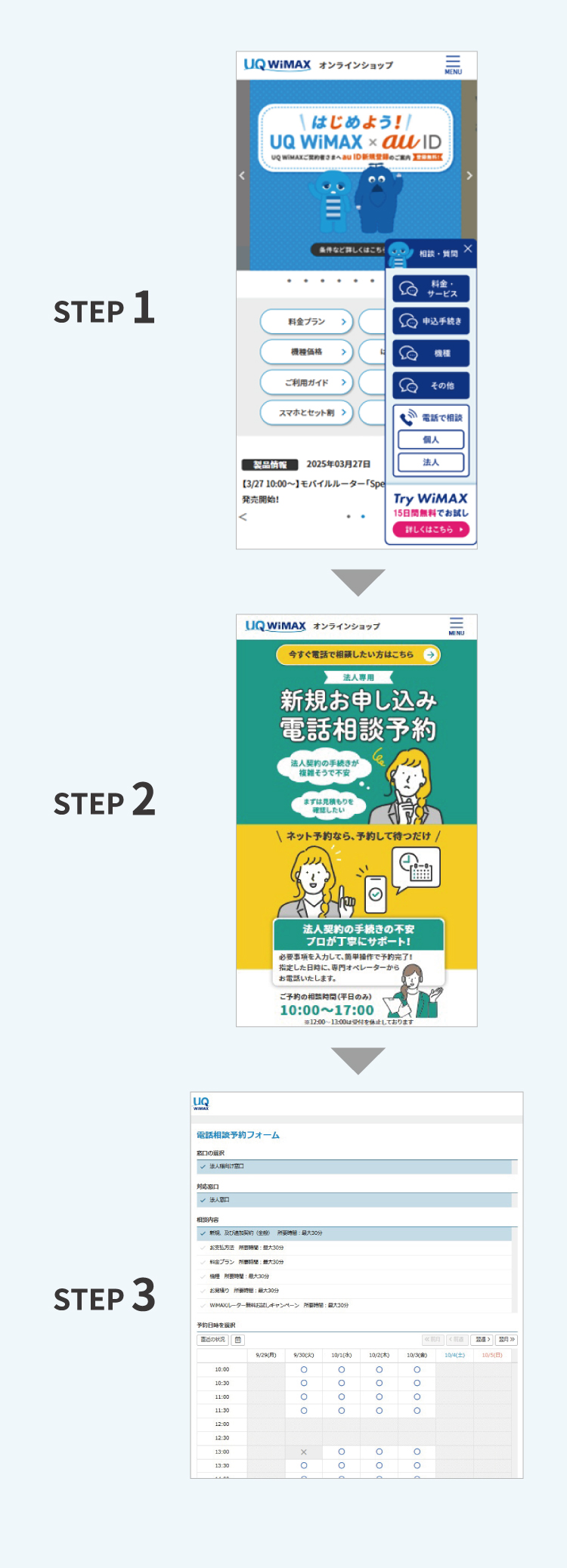電話相談予約手順: